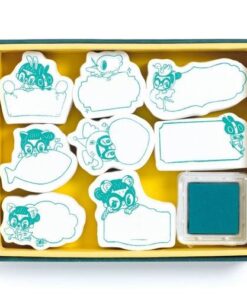 Ilustrowane pudełko zawierające 8 piankowych stempli oraz poduszeczkę z tuszem.