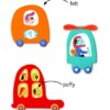 - zestaw zawiera: 24 filcowe kształty samochodów, 6 arkuszy z wypukłymi elementami i postaciami do wypchnięcia i naklejenia, 1 arkusz z wypukłymi kołami do naklejenia