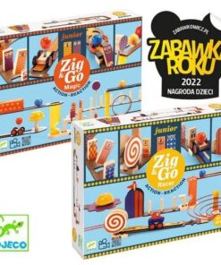 Dzieci mają do dyspozycji 3 konstrukcje torów przedstawione w instrukcji, które wystarczy odtworzyć. Można też spróbować stworzyć tor własnego pomysłu – możliwości jest bez końca! Zabawę urozmaicą zabawne postacie Zig w formie kostek domina. Gra jest kompatybilna z innymi pozycjami z tej serii. Do samodzielnej lub wspólnej zabawy.