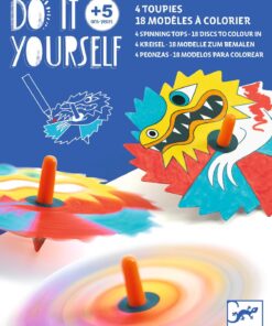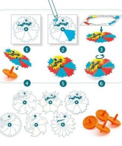 Zrób to sam Bączki Smoki od Djeco, to zestaw do samodzielnego wykonania kolorowych bączków z motywem smoka.