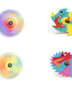 Zadaniem dziecka jest pokolorowanie obrazka, nałożenie nakładki na bączka i puszczenia go w ruch. Podczas wirowania kolory się mieszają i powstaje zjawisko optyczne. W zależności od tego, jak dziecko pokoloruje smoka, zjawisko optyczne za każdym razem będzie inne. Stwórz własne, niepowtarzalne bączki i leć do krainy smoków!