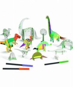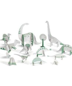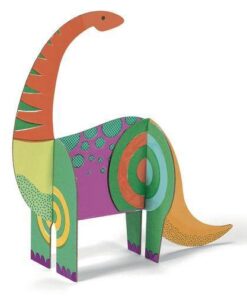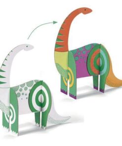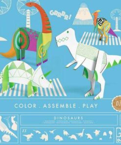W zestawie znajduje się 13 wstępnie wyciętych dinozaurówdo samodzielnego montażu bez kleju i nożyczek, do pokolorowania oraz instrukcja obrazkowa krok po kroku.