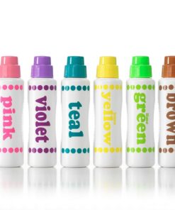 Do-A-Dot Art – flamastry kropkowe jaskrawe to duże flamastry kropkowe, które posiadają butelki dopasowane do rączek dziecka, zakończone dużą, miękką gąbeczką. Farba w płynie jest nietoksyczna, zmywalna i szybko wysychająca.