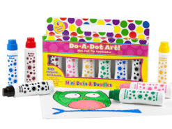 Bez wody, bez pędzelków, bez plam, bez bałaganu, bez nerwów. Duże Flamastry Kropkowe Mini to idealne narzędzie do nauki i zabawy z małymi dziećmi, które uwielbiają zabawę w kolorowanie. Dzięki łatwości stawiania kolorowych kropek, dzieci będą kolorować, malować, tworzyć i uczyć się bez frustracji i bałaganu. Dzięki swoim walorom, flamastry od firmy Do-A-Dot Art, są standardowym wyposażeniem amerykańskich przedszkoli i szkół.