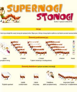 „Supernogi stonogi” to kontynuacja bestsellerowej gry dla dzieci „Nogi stonogi”. Zawiera elementy znane z pierwszej części oraz 4 rozszerzenia. Dodatki urozmaicają rozgrywkę i umożliwiają grę nawet 6 osobom. Można je wprowadzać pojedynczo albo grać ze wszystkimi naraz!