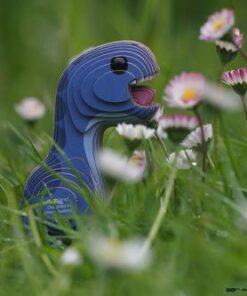 - Układanka 3D do samodzielnego złożenia niebieskiego dinozaura.