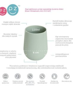 Mini Cup amerykańskiej marki EZPZ (czyt. izipizi) to wykonany z silikonu następny kubeczek Twojego dziecka. Przeznaczony jest dla dzieci od 12. miesiąca życia, które opanowały już picie z kubeczka Tiny Cup (tzn. piją samodzielnie bez pomocy dorosłych) i są gotowe na picie większej ilości płynów podczas posiłku.