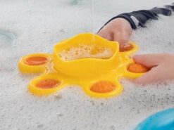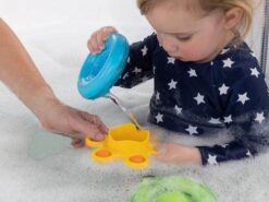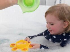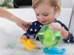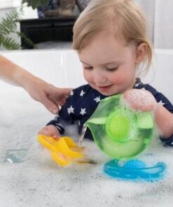 Bąbelki Kąpielowe, to także zabawki, które sprawdzą się poza kąpielą. Będą inspirować do wciąż nowych zabaw i eksperymentowania. Do zielonego dzbanuszka można wsypać fasolę lub ryż i patrzeć jak się przesypuje lub chrupeczki, które maluch będzie podjadać. Zabawki mają ergonomiczny kształt, są łatwe w trzymaniu i dopasowane wielkością do małych rączek. Można zabrać na plac zabaw i wsypywać piasek, lub pykać bąbelkiem na spacerze.