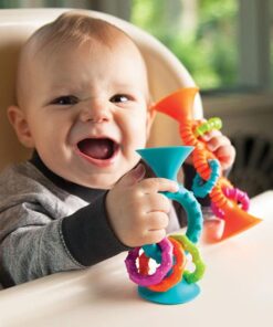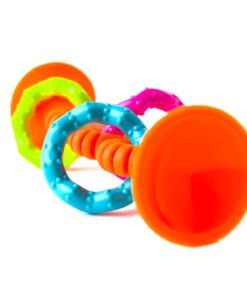 Bobo Przyssawka Grzechotka to cudowny zabawka, przyssie się wszędzie, do wanny, do wózka, w podróży, na podłodze w kuchni. Duża, mocno trzymająca się gładkiej powierzchni, z kolorowymi pierścieniami, będzie intrygować malucha, maluch będzie ją ciągnął, grzechotał, odrywał, przysysał.