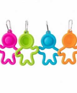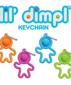 Dimpl Liliputek o wyglądzie małego ludzika w całości wykonany jest z miękkiego różowego silikonu, a jego główka to miękki bąbelek z logo Fat Brain Toy Co, do wciskania i wypychania dla rozbieganych paluszków dzieci i dorosłych. Śliczna zabawka antystresowa, którą można przyczepić do plecaka, kluczy, torebki dzięki wysokiej jakości karabińczykowi.