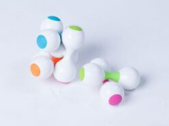 - Zawiera 5 elementów – rdzeń w kształcie litery H, 4 elementy z kolorowego silikonu i plastiku.