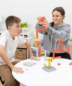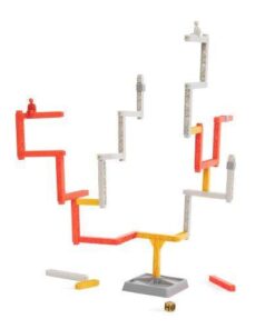 - Gra zawiera 30 belek belek w kolorze czerwonym i białym, 6 belek żółtych poprzecznych, 2 robotników (czerwony i biały), podstawę, stojak T, jedną kostkę.