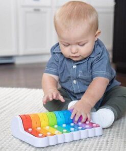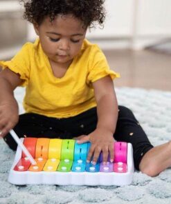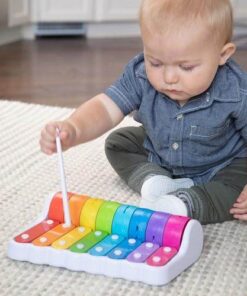 Klasyczne dzwonki z dodanymi kółeczkami, które wprawione w ruch sprawią, że instrument wydzwoni pięknie każda nutę. Zabawka jest przeznaczona dla niemowląt, które nie potrafią jeszcze utrzymać w rączce pałeczki, a w kolejnym etapie dla dzieci, które samodzielnie będą potrafiły wydzwonić melodię na dzwonkach. Smyk leżąc na brzuszku radośnie będzie kręcił kółeczkami rozwijając mięśnie, umiejętności motoryczne i poczucie rytmu.