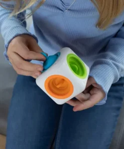 Fat Brain Toy Co. – kostka sensoryczna – sensokostka może również pomóc starszym dzieciom wyciszyć rozbiegane myśli i paluszki po intensywnej pracy umysłowej.
