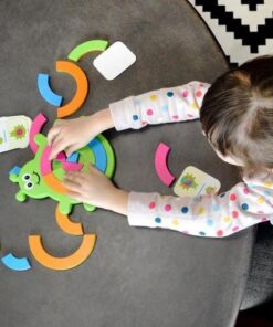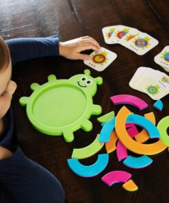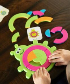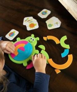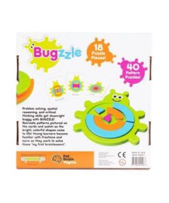 Dzieci będą zafascynowane wyzwaniami uśmiechniętego żuczka Bugzzle. Wybierz jedną z 40 kart z wyzwaniami, a następnie spróbuj odtworzyć kolorowy wzór na brzuszku żuczka, wykorzystując półkoliste, różnokolorowe elementy układanki.