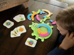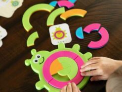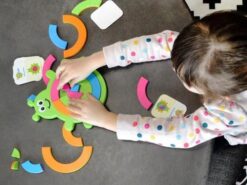 Dzieci będą zafascynowane wyzwaniami uśmiechniętego żuczka Bugzzle. Wybierz jedną z 40 kart z wyzwaniami, a następnie spróbuj odtworzyć kolorowy wzór na brzuszku żuczka, wykorzystując półkoliste, różnokolorowe elementy układanki.