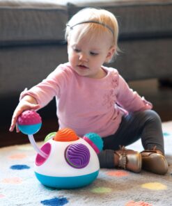 Sensoryczna zabawka rozwija wszystkie zmysły rosnącego malucha, poprzez jaskrawe kolory, dźwięki, różnorodną fakturę kul.