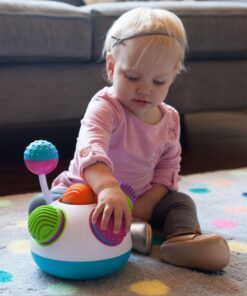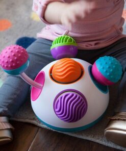 Jedna zabawka, a tyle rzeczy do odkrycia. Popchnij różową kulę z jednej strony, a niebieska z drugiej strony Klickity wysunie się w górę. Zieloną i fioletową kulę można klikać do i ze środka zabawki, a kulą na środku można kręcić, kręcić i kręcić.