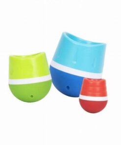 - Zestaw trzech kołyszących się kubków do wkładania jeden w drugi i przewracania.