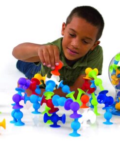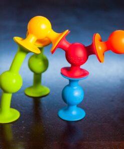 Przyssawki są giętkie, łapią się wszystkiego i zasysają w zabawie. Przeobrażą się w co tylko Twoje dziecko zechce, będą zabawnie dyndać z lodówki lub okna, aby dawać radość Twojemu maluchowi.  Przykleić je do siebie to jedna przyjemność, a druga to rozkleić słuchając jak zabawnie “strzela”, to „strzelanie” tak samo wciąga jak przyklejanie.