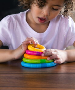 W każdym kółku wbudowane są magnesy, rozłożone tak, aby bez względu na to, która strona pierścienia będzie skierowana do góry, zawsze będą się przyciągać, łączyć i układać w piramidkę od dużych do małych!