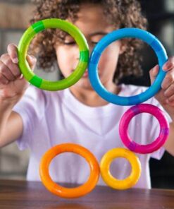 Pięć wysokiej jakości, każdy innej wielkości, magnetycznych pierścieni pokrytych przyjemnie miękką, gumowatą fakturą. Ułóż je w piramidkę, włóż jedno w drugie, odkryj możliwości tych magnetycznych pierścieni.
