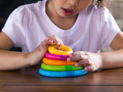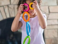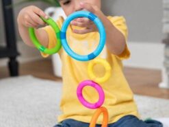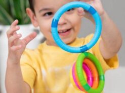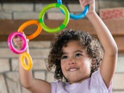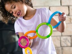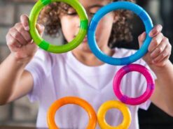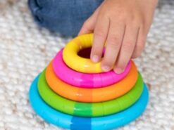 W każdym kółku wbudowane są magnesy, rozłożone tak, aby bez względu na to, która strona pierścienia będzie skierowana do góry, zawsze będą się przyciągać, łączyć i układać w piramidkę od dużych do małych!