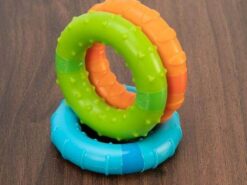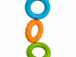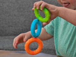 Układaj, łącz, turlaj, grzechocz i odkrywaj. Trzy magnetyczne kółeczka, które łączą się ze sobą, z każdej strony. Każde kółeczko ma gumową powierzchnię, różną fakturę oraz wbudowaną grzechotkę. Genialnie prosta, niesamowicie wciągająca zabawa, nie tylko dla małego dziecka.