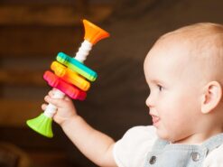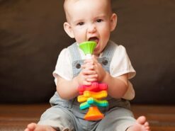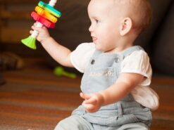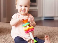 MiniSpinny to idealna zabawka do zabrania ze sobą w podróż, do parku, na spacer. Trzy kolorowe śmigła zabezpieczone są przed wypadnięciem. Każde śmigiełko jest dwukolorowe, ma wypustki i kształt łatwy do chwytania lub gryzienia wszystko aby dodatkowo stymulować malucha.