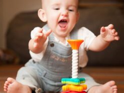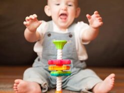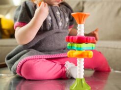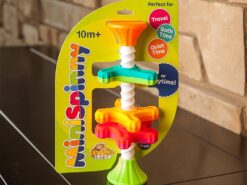 Zakręcone MiniSpinny to młodsza siostra Zakręconej Wieży SpinAgain. Zabawka została zaprojektowana aby nieustannie pobudzić zmysły dziecka. Piękne, żywe kolory, różna faktura śmigiełek, wirujących góra, dół, rozmiar dopasowany do rączek maluszka wszystko z myślą aby stymulować rozwijający się mózg dziecka.