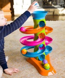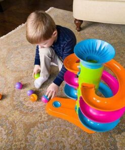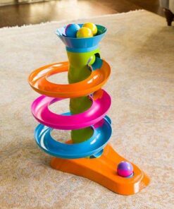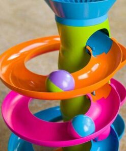 Niekończąca się zabawa z Zakręconą Zjeżdżalnią dla Kulek. Podnieś piłeczkę z podstawki, a reszta kulek zacznie się turlać równo, w tym samym momencie. Kolorowa, czteropoziomowa wieża, będzie fascynować dzieci, dzięki unikalnemu mechanizmowi, który sprawia, że wszystkie kolorowe piłeczki toczą się jednocześnie.