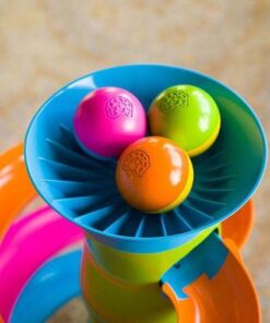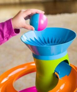 Zestaw zawiera łatwą do złożenia wieżę oraz 5 kulek. Zabawka nie wymaga baterii, nie zawiera BPA.