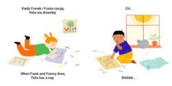 Kiedy Franek I Frania jedzą śniadanie, Felix się bawi.