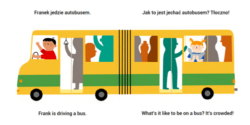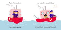 W tej części serii ćwiczymy wyrażenia związane z poruszaniem się różnymi środkami lokomocji oraz pytaniami o wrażenia z podróży „Jak to jest…?”. Wprowadzone są nazwy pojazdów oraz czynności takie jak: kierowanie, jechanie, pływanie, latanie oraz przysłówki określające wrażenia z podróży. Dzieci widzą Franka, Franię i Felixa w różnych pojazdach – takich na co dzień oraz tych fascynujących (zwłaszcza chłopców) jak koparka, w której jest głośno, łódź podwodna, która jest głęboko czy statek, na którym buja. Czy Felixowi podoba się na statku? O tym można się przekonać, zaglądając do książki.
