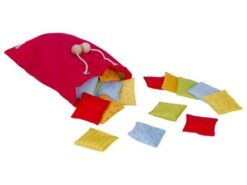 Kolejna ciekawa propozycja gry w memo od Goki. Tym razem używamy zmysłu dotyku i czucia. Chowamy poduszeczki do worka i wkładając rękę do środka naszym zadaniem jest wyciągnięcie 2 poduszeczek o tym samym wypełnieniu. Po wyciągnięciu poduszeczek łatwo zweryfikować ich dopasowanie – powinny mieć również ten sam kolor i wzór! Zestaw zawiera 20 poduszeczek. Zabawka została wykonana z materiału. Goki to producent drewnianych zabawek dla dzieci, które wyróżnia styl, żywe kolory, wysoka jakość i innowacyjność. Produkty Goki wspierają rozwój sensoryczny i motoryczny dziecka, skłaniają do logicznego myślenia, a rodzicom pomagają tworzyć zrównoważony styl zabawy bez hałasu i plastiku. Waga: 0,125 kg; Wiek: 3+