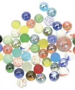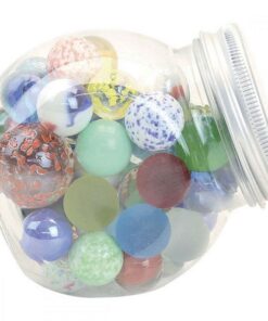 Słoik 50 kulek szklanych do zabawy dla dzieci od 4 lat. Są różne wersje tej gry. Grać można w domu lub na dworze. Na przykład, w wyznaczonym obszarze, gracze muszą wturlać kulki jak najbliżej największej kulki.
