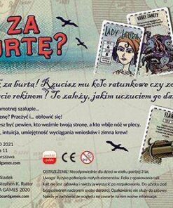 Kto za burtę to towarzyska gra karciana w której liczy się spryt, intuicja, umiejętność wyciągania wniosków i zimna krew! Jako rozbitkowie dryfujący po morzu w szalupie ratunkowej, stracie się przetrwać. W trakcie podróży zbieracie kosztowności i spiskujecie przeciwko sobie. Wygra ten, kto dotrze do wyspy i zdobędzie najwięcej drogocennych przedmiotów. Miejcie oczy z tyłu głowy i pamiętajcie, że ktoś życzy wam śmierci.