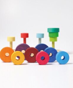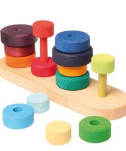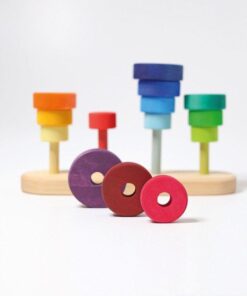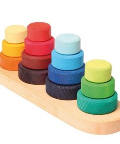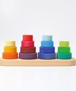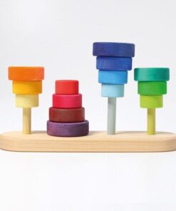 Stożkowa wieża do nakładania to klasyka wśród zabawek dla najmłodszych. Jakąś jej wersją w swoim dzieciństwie bawił się chyba każdy. Zestaw 4 mini wież Grimm’s to wyjątkowa odsłona tej popularnej zabawki.