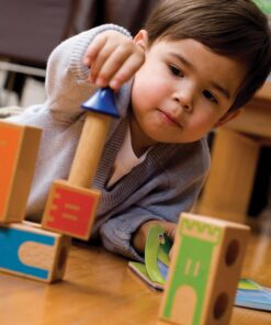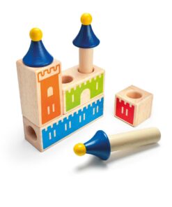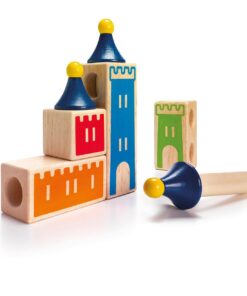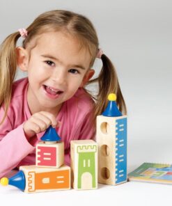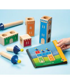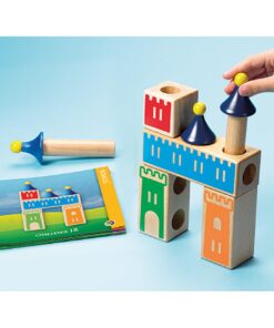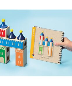 Wypróbuj swoją pomysłowość, wyobraźnię i umiejętności logicznego myślenia konstruując zamki z pięknie wykonanych drewnianych elementów. Twoje zadanie polega na takim ułożeniu drewnianych klocków, aby powstał jeden z zamków umieszczonych w książeczce z zadaniami.