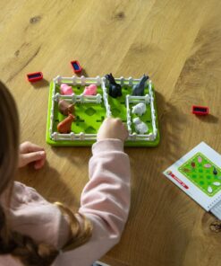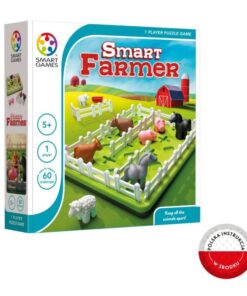 Smart Games Smart Farmer to gra logiczna, w której Twoim zadaniem będzie opanowanie bałaganu na farmie. Zwierzęta sprawiają sporo problemów, a Ty, żeby utrzymać je w odpowiednim porządku musisz zbudować ogrodzenia. Brzmi prosto? Nic bardziej mylnego, każde ze zwierząt musi mieć własną część łąki, a to nie będzie takie proste, bo do dyspozycji masz tylko trzy ogrodzenia.