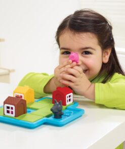 Smart Games Three Little Piggies to gra logiczna, która przenosi nas w świat Trzech Małych Świnek, które muszą się schronić przed Wielkim Złym Wilkiem. Bajkowe wykonanie, atrakcyjna kolorystyka i prostota zasad, to tylko kilka z wielu zalet tej pięknej gry.