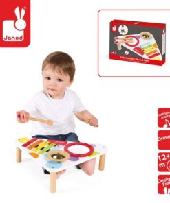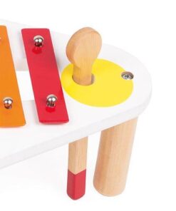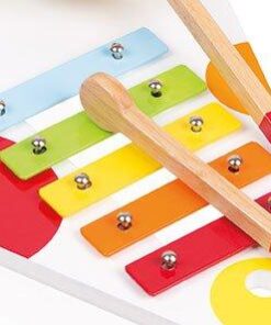 Drewniany stolik muzyczny to idealny pierwszy zestaw instrumentów dla małego dziecka już od 12 miesiąca życia.