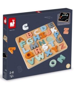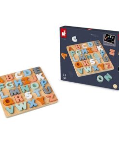 Rozwijaj kluczowe umiejętności dziecka dzięki drewnianym puzzlom Alfabet 3D z tablicą od francuskiej marki JANOD. Zabawka uczy alfabetu, koncentracji, spostrzegawczości, cierpliwości i pomaga w nauce pisania.