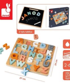 Drewniane Puzzle Alfabet 3D z Tablicą – JANOD 🌈🔤