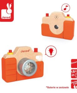 Drewniany aparat francuskiej marki JANOD to idealny prezent dla małego fana fotografii.