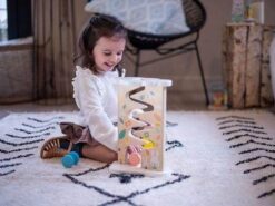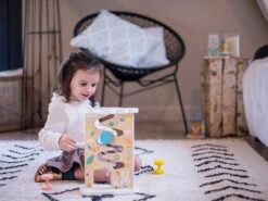 Drewniany tor zjeżdżalnia to idealna zabawka dla dzieci od 1. roku życia.