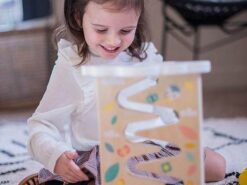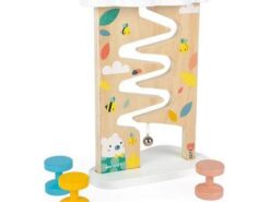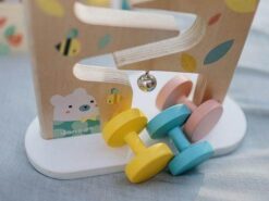 Przesuwając elementy maluch rozwija koordynację ruchową i motorykę, a także uczy się logicznego myślenia. Tor ma piękne pastelowe kolory, które zaciekawiają i zachęcają dziecko do zabawy. Wszystkie elementy są wygodne do trzymania w małych rączkach.