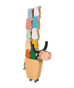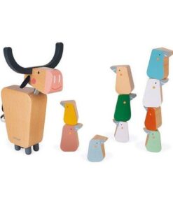 Gra zręcznościowa Bawół francuskiej marki JANOD to wspaniała zabawa, zarówno dla kilkorga, jak i jednego dziecka. Zestaw składa się ze sporego drewnianego bawoła z rozłożystym porożem, głową na sprężynie i dzwoneczkiem na końcu ogona oraz 10 drewnianych ptaszków – bąkojadów w pięknych pastelowych kolorach i dwóch rozmiarach, które należy ustawiać na jego dość szerokim grzebiecie w taki sposób, by z niego nie spadły oraz utworzyły jak najwyższą, stabilną konstrukcję. Gracz, który doprowadzi do jej upadku – przegrywa. Gra ta ćwiczy koncentrację i zręczność.