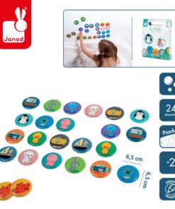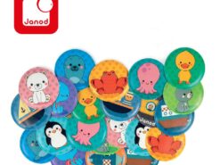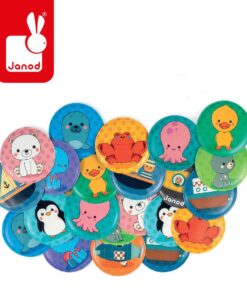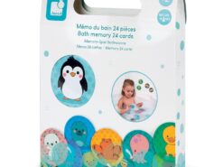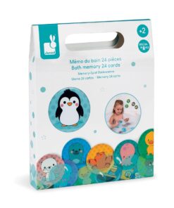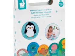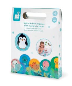 Gra pamięciowa memory francuskiej marki JANOD, przeznaczona do zabawy w kąpieli. Składa się z: 24 okrągłych wodoodpornych żetonów z 12 różnymi obrazkami, które należy dobrać w pary, odkrywając je i zapamiętując ich położenie. Na żetonach znajdują się m.in. pingwin, żaglówka, łódź podwodna, foka czy kaczorek. Zabawka ta jest idealnym umilaczem czasu, spędzanego w wannie. Zaprojektowana we Francji. Zapakowana w estetyczne pudełko z uchwytem. Idealnie nadaje się na prezent.