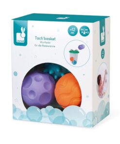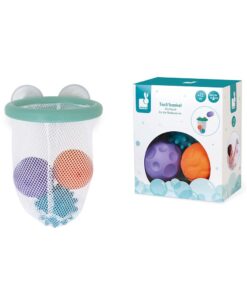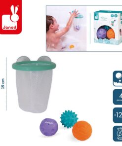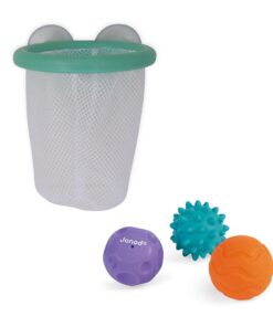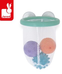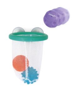 Gra w koszykówkę do kąpieli francuskiej marki JANOD to idealny sposób na umilenie czasu podczas kąpieli. Miękki koszyk-siatka z przyssawkami i 3 piłeczkami w intensywnych kolorach stymuluje zmysł dotyku i zachęca do ruchu. Zabawka rozwija wyobraźnię, ciekawość dziecka oraz stymuluje małą motorykę. Kosz można przymocować do wanny lub gładkich płytek w łazience. Gra została zaprojektowana we Francji i zapakowana w estetyczne pudełko, co czyni ją idealnym prezentem.